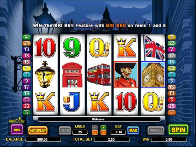 Aristocrat oyun geliştiricisinin en sevilen slot oyunları listesinde yer alan Big Ben, beş makaralı 25 ödeme hattına sahip. Sizi adeta Londra sokaklarında eşsiz bir tura çıkartacak olan Big Ben, hemen hepimizin alışık olduğu İngiliz otobüsleri ile içimizi ısıtıyor.