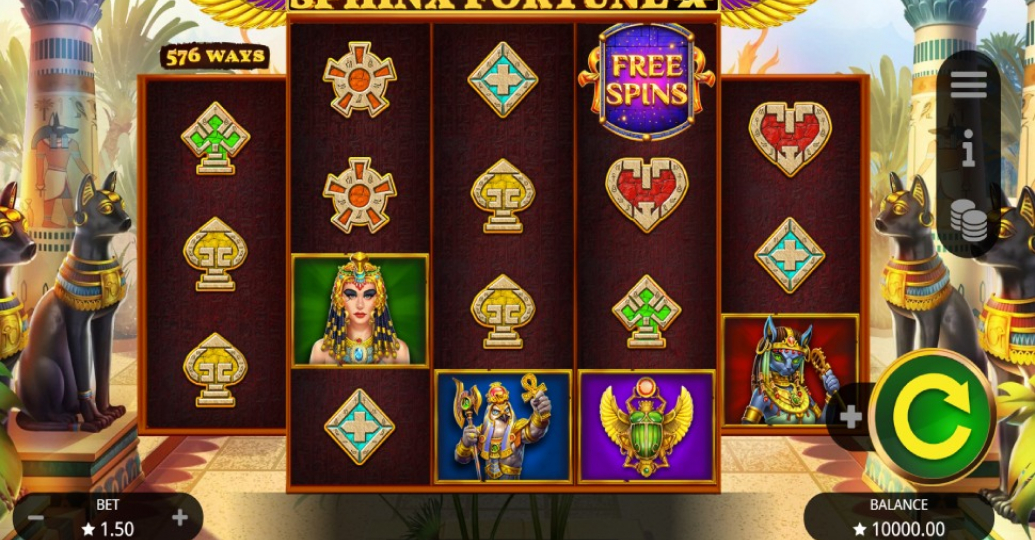 Sphinx Fortune Hold and Win, Eski Mısır’dan esinlenen temasıyla casino severler tarafından büyük bir beğeni toplayan popüler Booming Games slot oyunları listemizin ilk sırasında yer alıyor. Oyuncularına %95,32’lik ortalama bir RTP sunan oyun, beş makara ve 576 ödeme hattına sahip yüksek varyanslı slotlar arasında bulunuyor.