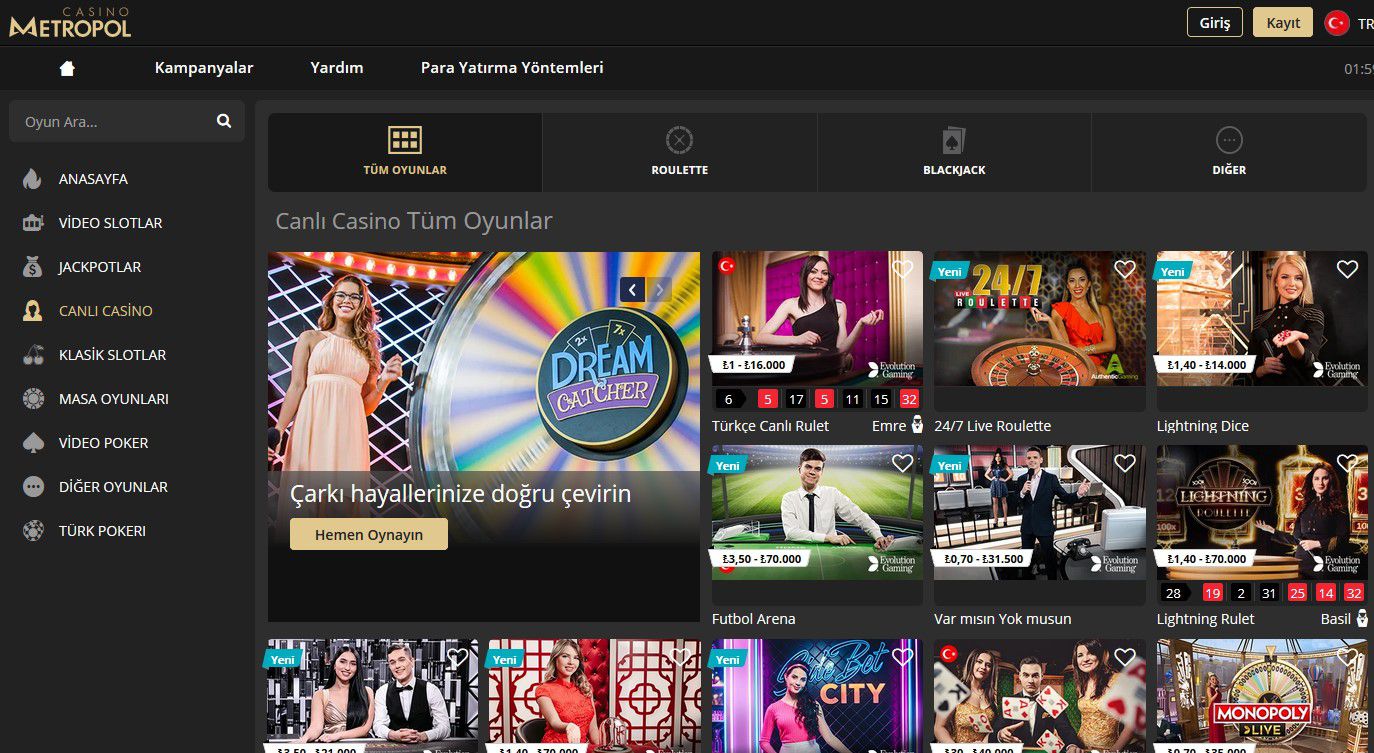 Casino Metropol casino sitesi üzerinden “Video Slotlar, Günlük Jackpotlar, Canlı Casino, Klasik Slotlar, Jackpotlar, Masa Oyunları, Türk Pokeri, Diğer Oyunlar” kategorilerine giriş yaparak binlerce oyun seçeneğinden size uygun olanı tercih edebilir, gerçek parayla eşsiz bir çevrimiçi casino deneyimi yaşayabilirsiniz.